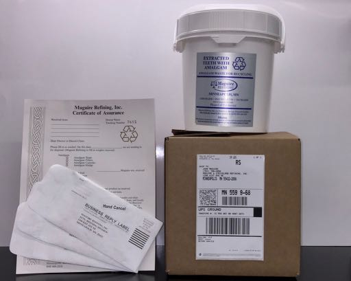 A Half gallon Life Latch Pail for disposing of large quantities of Extracted teeth with Amalgam. Designed with the oral surgeon in mind. Includes Life Latch Pail, Cardboard box and prepaid return shipping label.